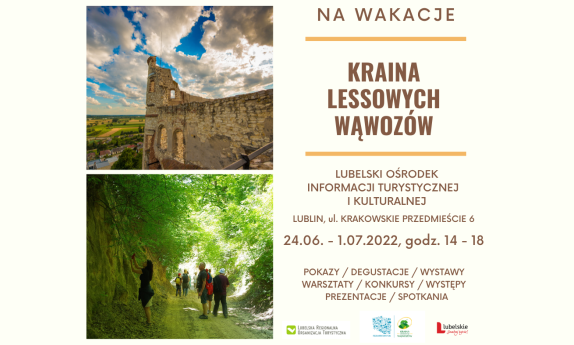 Wyjątkowa propozycja spędzenia niezwykłych wakacji - Lubelska Regionalna Organizacja Turystyczna zaprasza na prezentację oferty wakacyjnej Krainy Lessowych Wąwozów w Lubelskim Ośrodku Informacji Turystycznej i Kulturalnej, ul. Krakowskie Przedmieście 6, od 24 czerwca do 1 lipca, codziennie od godz. 14.00-18.00. W programie wystawy, degustacje, warsztaty i pokazy. ...