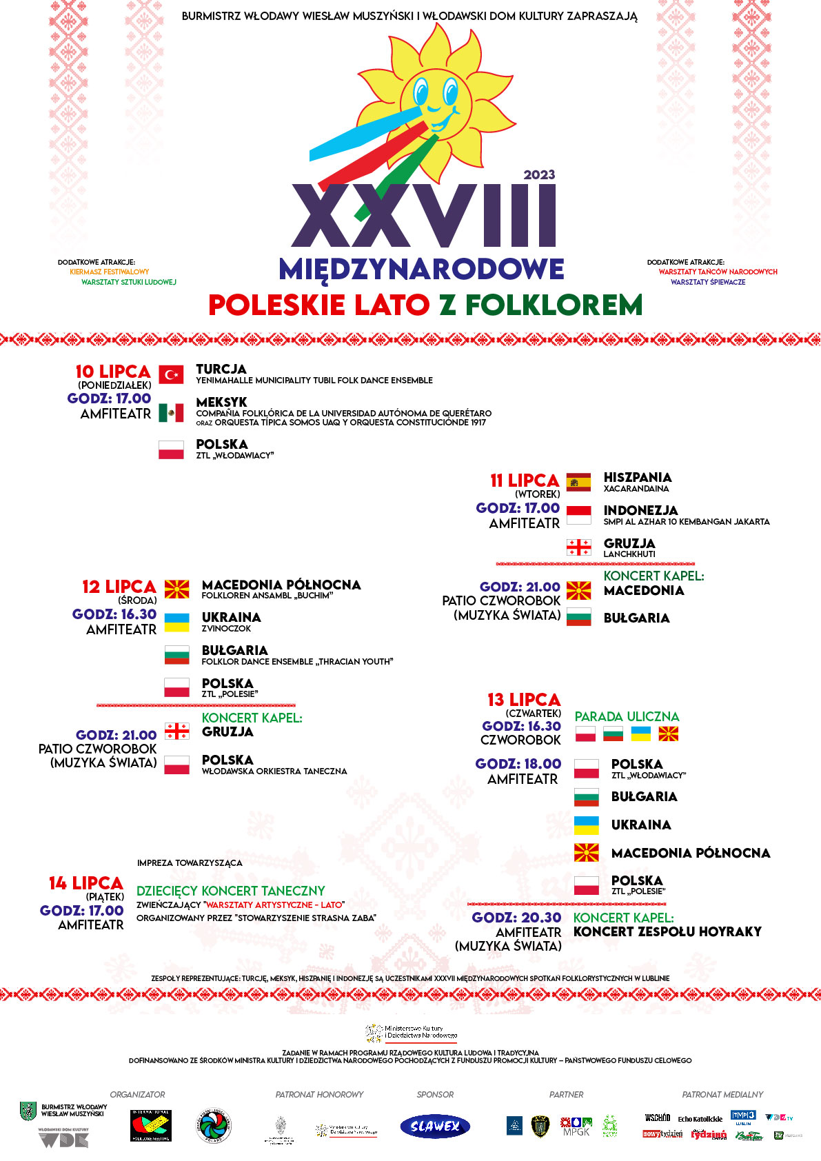 Poleskie Lato z Folklorem to niepowtarzalna okazja, aby ujrzeć kawałek świata nie przemierzając państwowych granic. Przybywając do malowniczej Włodawy mamy szansę poznać kulturę ludową z różnych regionów, państw czy kontynentów. Folklor w najlepszym wydaniu!