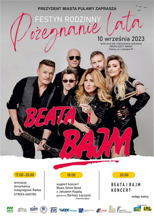 Pożegnanie lata | Puławy 10.09.2023 10.09.2023 Pożegnaj lato w Puławach razem z zespołem Bajm w trakcie festynu rodzinnego. Więcej informacji na facebook.com