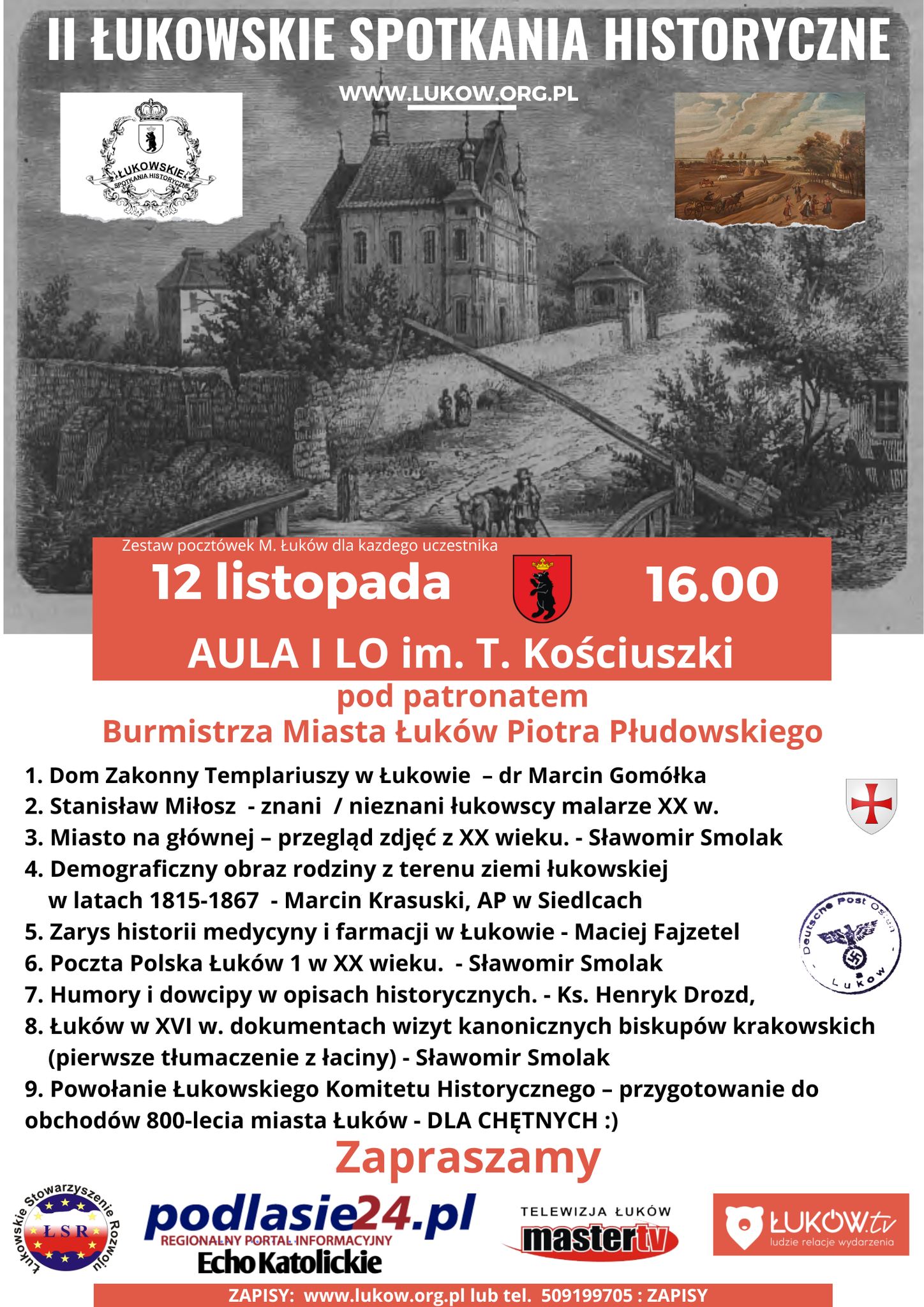 Prawdziwa gratka dla miłośników lokalnej historii! Nadchodzą II Łukowskie Spotkania Historyczne - wydarzenie mające na celu popularyzację historii regionu łukowskiego.