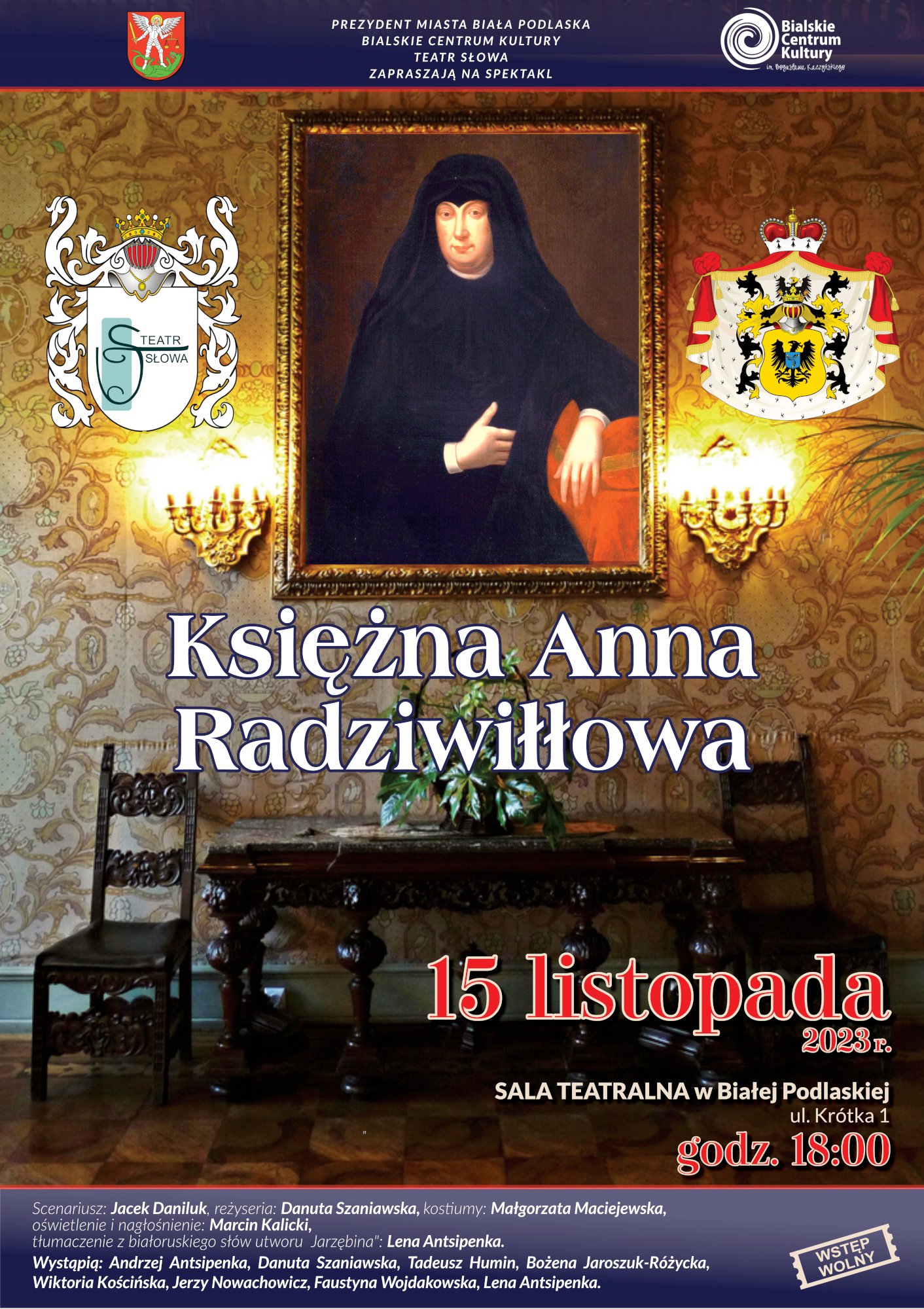Jaka była Księżna Anna z Sagnuszków Radziwiłłowa? Postać zostanie przybliżona w trakcie spektaklu wykonanego przez Teatr Słowa w reżyserii Danuty Szaniawskiej.
