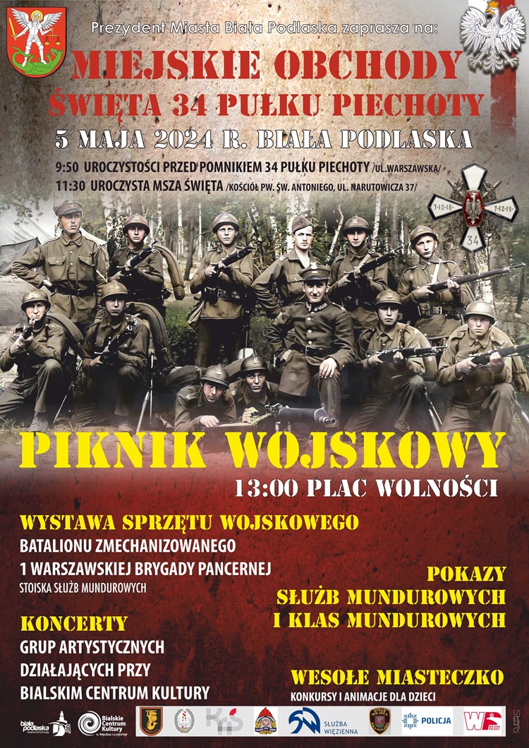 Zapowiada się wojskowa niedziela w Białej Podlaskiej. Miejskie Obchody Święta 34 Pułku Piechoty pokryją się z Piknikiem Wojskowym.
