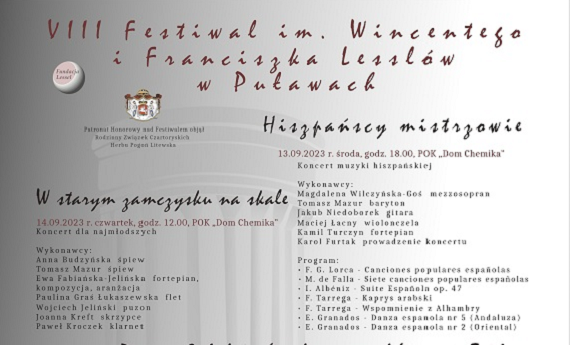 Znliża się puławskie święto muzyki połączone z historią. Idea festiwal opiera się na dorobku zgromadzonym przez rodzinę Czartoryskich. Wiecej informacji na facebook.com ...