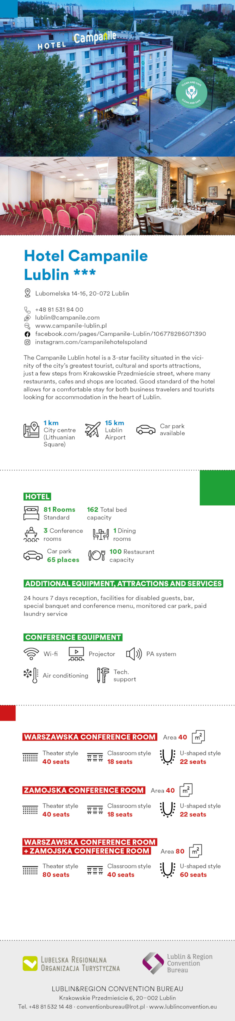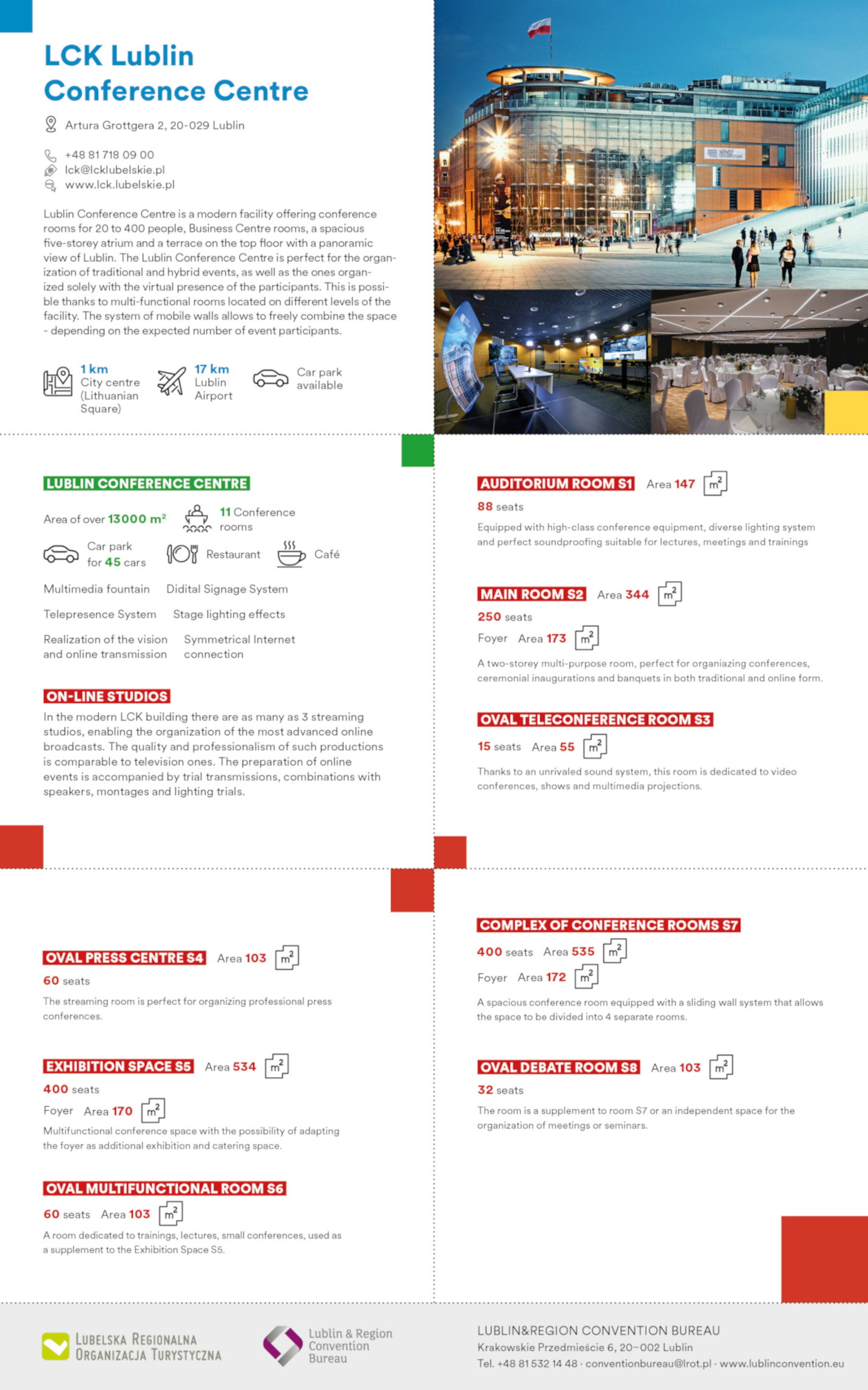The Lublin Convention Bureau (branch of the Lublin Regional Tourist Organisation) is a unit that integrates institutional, scientific and business partners in joint activities for the effective acquisition of events in the Lublin Province. We are a neutral partner for organizers of business events in the Lublin Voivodeship: conferences, congresses, fairs, and alike. We have a constantly updated conference and hotel base in the region. We act as an integrator, promoter and spokesman of the Lublin meetings industry towards external event organizers. Our mission is to increase the number of events in the region.