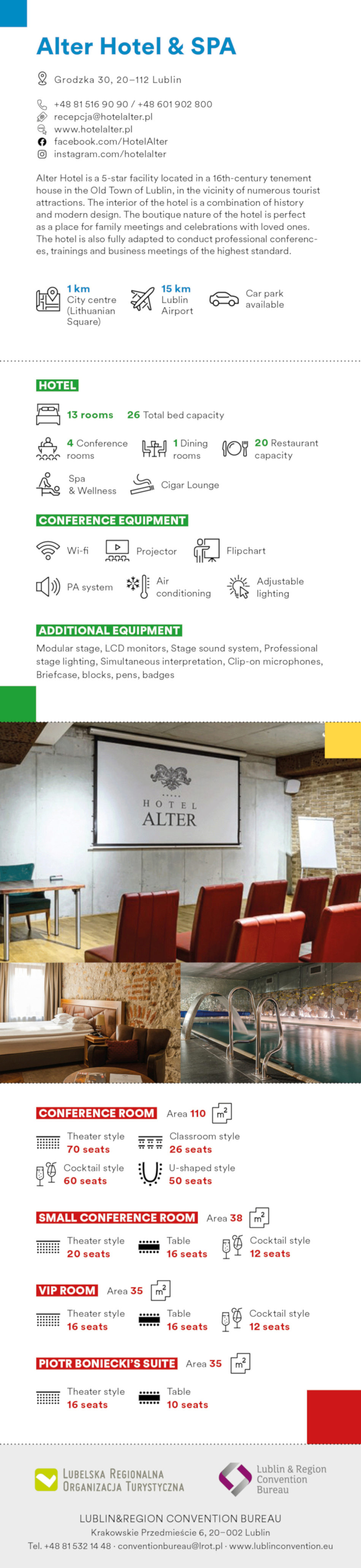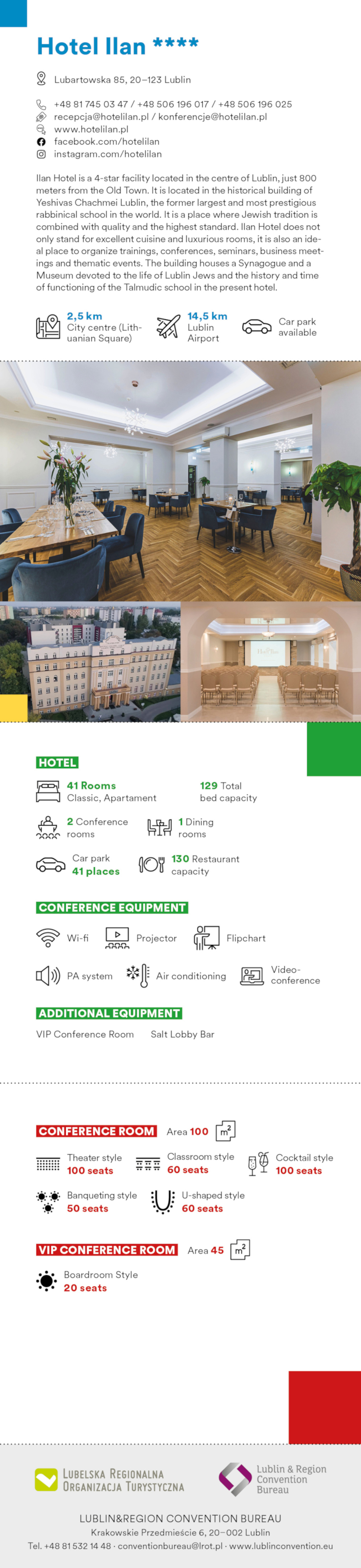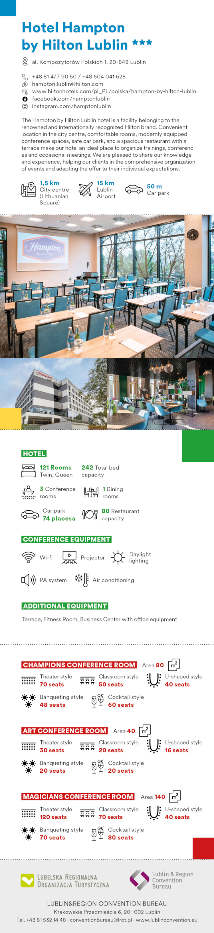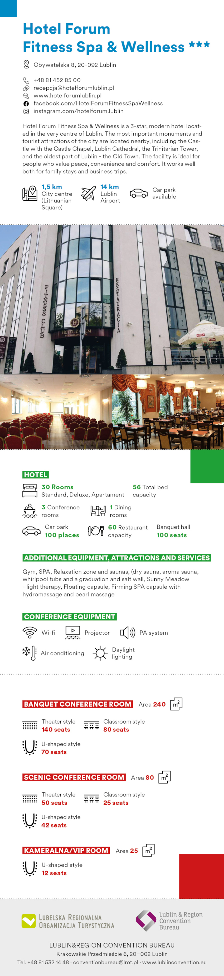 Below we present the Conference Venues Catalogue from the Lublin Voivodeship, where you can find information about conference equipment, available conference rooms of the largest conference facilities and hotels in our region. The catalog will be constantly updated and supplemented.