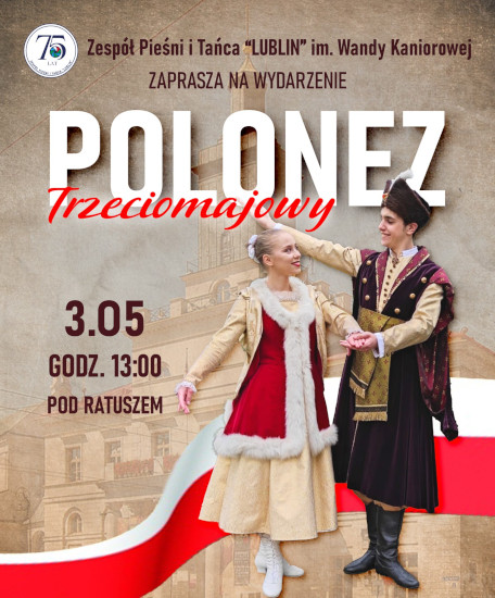W dniu Narodowego Święta Trzeciego Maja, Zespół Pieśni i Tańca „Lublin” oczaruje zgromadzonych w centrum Lublina tradycyjnym polonezem oraz tańcami narodowymi i regionalnymi. Jak co roku, do tańca zostaną zaproszeni mieszkańcy i goście Koziego Grodu.