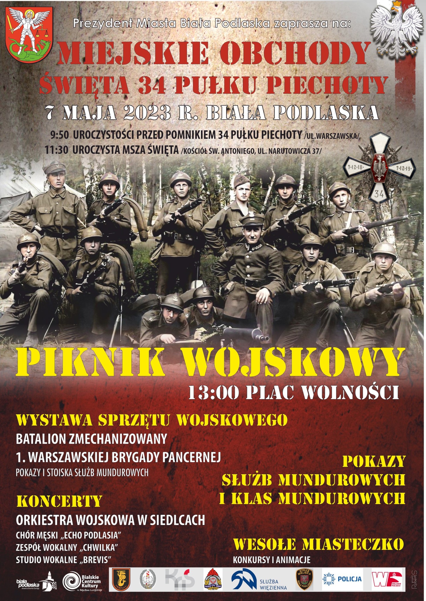 Miejskie Obchody Święta 34 Pułku Piechoty w Białej Podlaskiej zostaną połączone z piknikiem wojskowym.