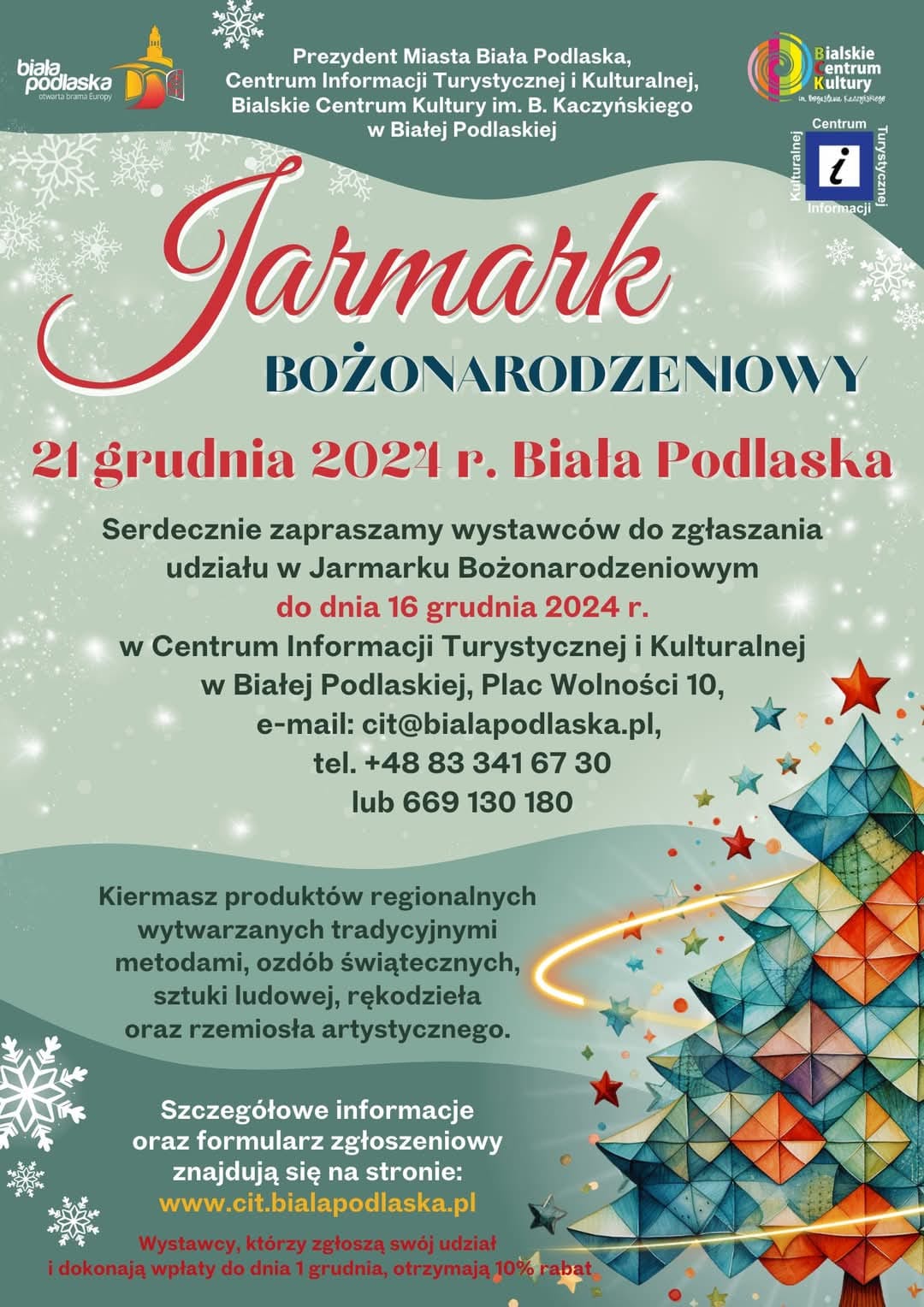 To kiermasz sztuki ludowej, rękodzieła, rzemiosła artystycznego, ozdób i stroików świątecznych oraz wielu produktów wytwarzanych tradycyjnymi metodami na stół świąteczny. Jarmarkowi towarzyszą liczne atrakcje, m.in. wspólne kolędowanie, konkurs na „Najpiękniejsze życzenia świąteczne z Białej Podlaskiej” oraz bogaty program artystyczny na scenie Placu Wolności.