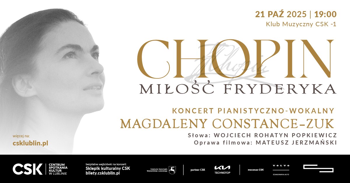21 października 2025 roku w Klubie Muzycznym CSK odbędzie się koncert pianistyczno-wokalny Magdaleny Constance-Zuk „CHOPIN. MIŁOŚĆ FRYDERYKA”, łączący oryginalne utwory Chopina z nowoczesnymi interpretacjami wokalnymi i oprawą multimedialną. W programie znalazły się m.in. preludia, nokturny, walce, polonezy oraz etiudy mistrza fortepianu.