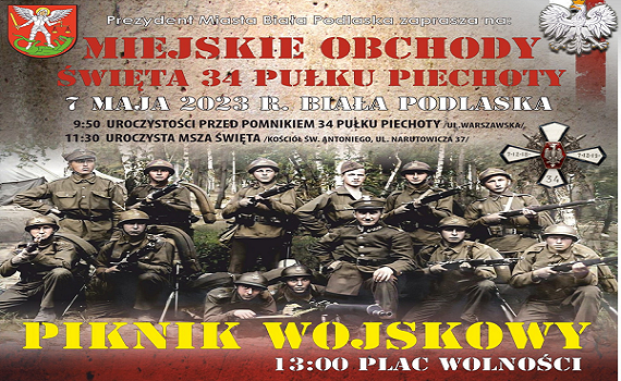 Miejskie Obchody Święta 34 Pułku Piechoty w Białej Podlaskiej zostaną połączone z piknikiem wojskowym. Więcej informacji na facebook.com ...