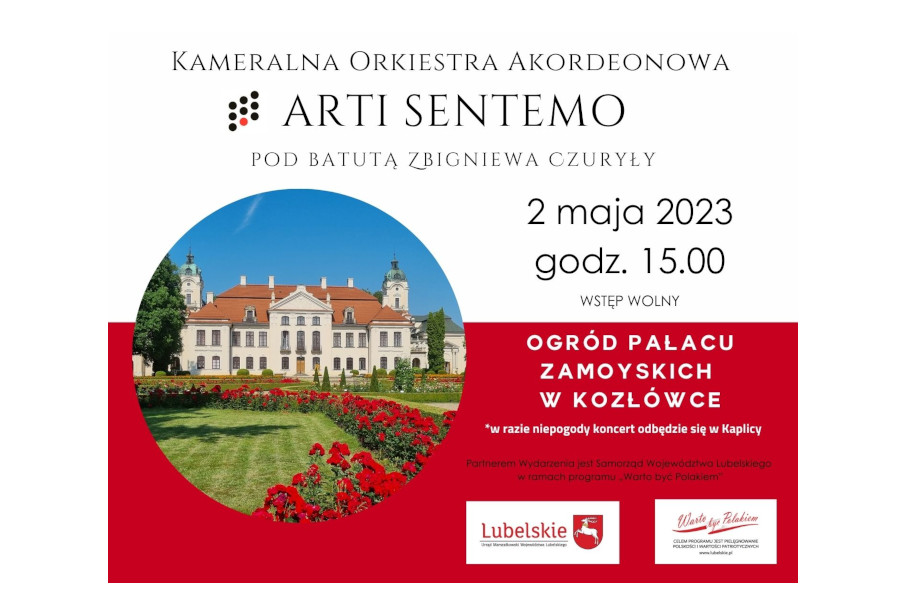 Kozłówka W przestrzeni kozłowieckiego parku zagra utytułowana radzyńska orkiestra akordeonowa Arti Sentemo. W obszernym repertuarze orkiestry znajduje się muzyka klasyczna, rozrywkowa i filmowa. Artyści wykonają m in. transkrypcje dzieł symfonicznych różnych epok oraz oryginalną muzykę akordeonową. ...