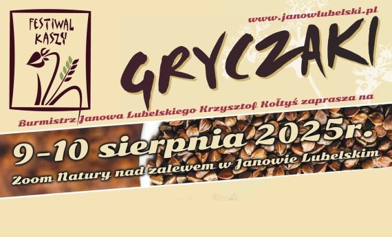 XXII Festiwal Kaszy GRYCZAKI odbędzie się w dniach 9–10 sierpnia 2025 r. w Janowie Lubelskim, na terenie Zoomu Natury nad Zalewem Janowskim. W programie m.in. koncerty Oskara Cymsa i zespołu Blue Cafe, prezentacje zagród wiejskich, konkursy kulinarne oraz regionalne specjały. ...