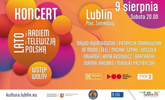 Lublin 9 sierpnia w Lublinie zapowiada się muzyczna i pełna atrakcji sobota. Na Placu Zamkowym o godz. 20:00 odbędzie się wielki koncert w ramach Koncertowej Trasy TVP2 i Polskiego Radia, podczas którego wystąpią m.in. Dawid Kwiatkowski, Patrycja Markowska, De Mono, Feel, Michał Szpak, Urszula, Organek, Anna Rusowicz, Brathanki, Joanna Jakubas i Mikołaj Przybylski. Wydarzeniem towarzyszącym będzie Piknik Edukacyjny „Ale kosmos!”, który rozpocznie się o godz. 12:00 na Błoniach pod Zamkiem. Na odwiedzających czekać będą atrakcje takie jak model stacji kosmicznej, symu ...