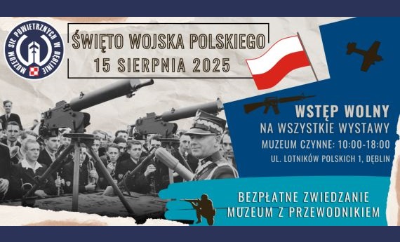 Dęblin Muzeum Sił Powietrznych zaprasza do wspólnego świętowania. W programie wydarzenia między innymi bezpłatne zwiedzanie Muzeum w towarzystwie przewodnika. Wstęp na wszystkie wystawy będzie darmowy. ...