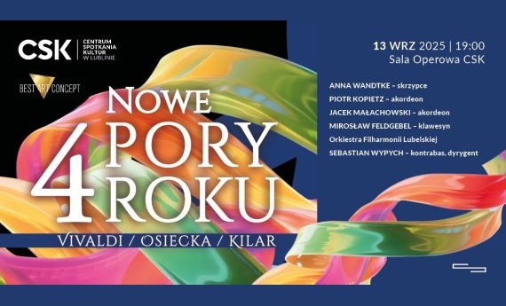 Lublin Nowatorska interpretacja „Czterech pór roku” Antonio Vivaldiego łączy elementy improwizacji w stylu minimal music, trans i world z cytatami z „Orawy” Wojciecha Kilara oraz recytacjami sonetów Vivaldiego i Agnieszki Osieckiej. Koncert w wykonaniu NEV VIBES i Orkiestry Filharmonii Lubelskiej w Centrum Spotkania Kultur zabierze publiczność w muzyczną podróż przez świat natury i żywiołów, wzbogaconą o artystyczne wizualizacje tworzone na żywo. ...