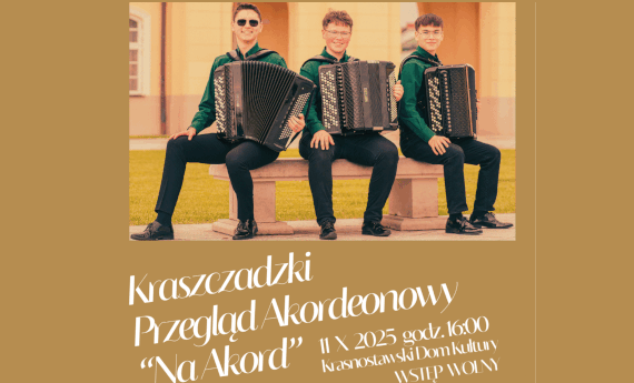 Krasnystaw Krasnostawski Dom Kultury wypełni się akordeonowymi brzmieniami podczas Kraszczadzkiego Przeglądu Akordeonowego „Na Akord”. Solowe popisy, kameralne utwory i popularne szlagiery zaprezentują wybitni akordeoniści, a kulminacją będzie koncert nagradzanego Trio Akordeonowego ArtiS, które oczaruje publiczność energią i świeżymi interpretacjami. Po występach przewidziano wspólne muzykowanie i potańcówkę, łącząc sztukę z zabawą i integracją miłośników muzyki. ...