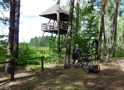 Wskakujemy na rowery i poznajemy piękno poleskiej przyrody. Przed nami dwadzieścia 21 kilometrów przygody. Ścieżka zaczyna się we wsi Łowiszów, przy zbiorniku Wytyckim, gdzie zlokalizowany jest parking z wiatą turystyczną. Na trasie znajduje się torfowisko wysokie „Durne Bagno" z wieżą widokową. Ścieżka tworzy pętlę prowadząc przez kompleks stawów w Pieszowoli oraz wzdłuż rzeki Mietiułka, do punktu, w którym rozpoczęliśmy przejażdżkę. Nawierzchnię stanowią drogi polne i leśne.