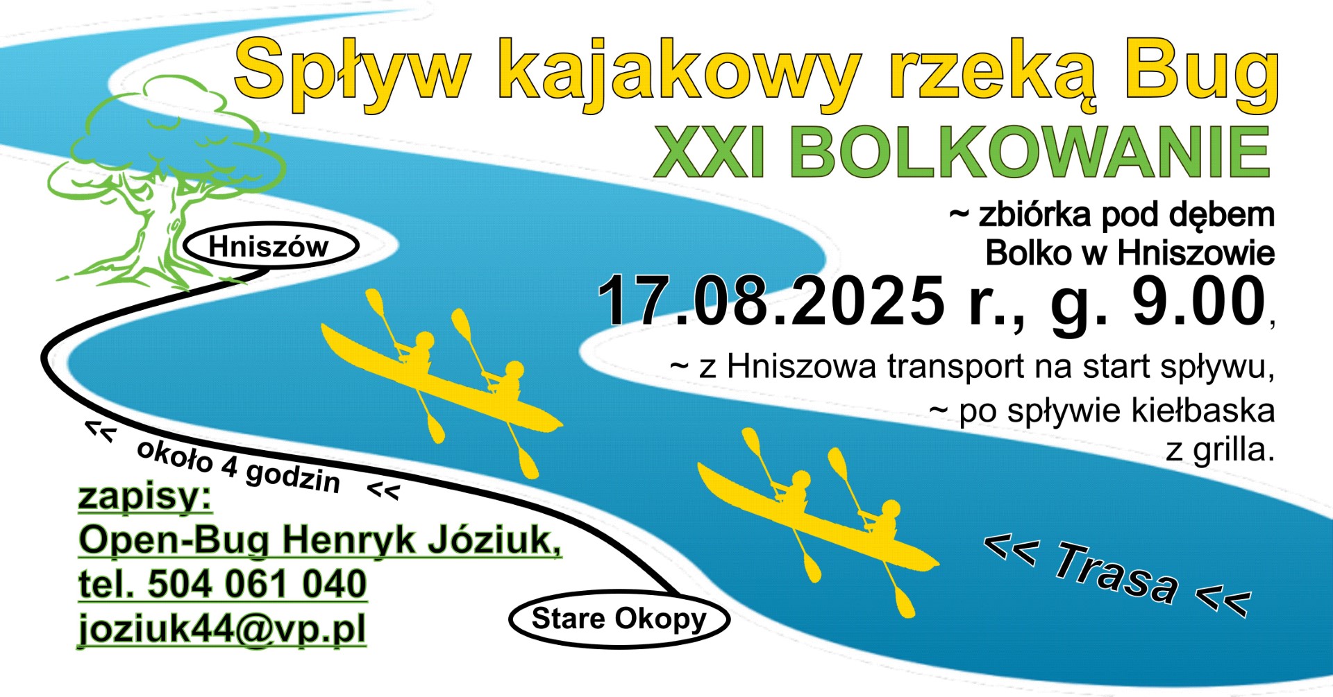 Bolkowanie to coroczna impreza dla uczczenia urodzin dębu "Bolko", rosnącego od 600 lat w małej miejscowości pow. chełmskiego – Hniszowie. Wydarzeniem towarzyszącym tegorocznego Bolkowania będzie spływ kajakowy ostatnią dziką rzeką Europy – Bugiem. Planowana trasa Stare Okopy – Hniszów (około 4 h).