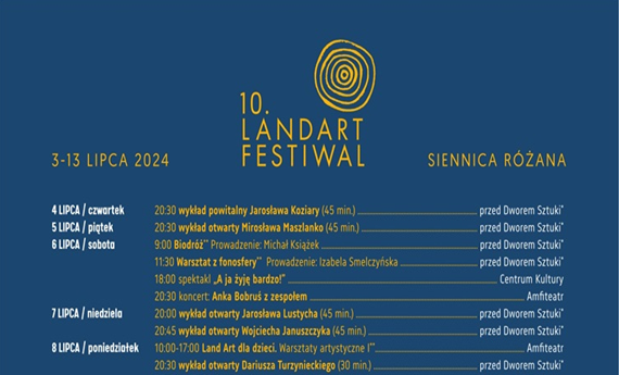 LandArt to festiwal prezentujący sztukę w niestandardowym otoczeniu, z dala od dużych miast, galerii czy muzeów. Podczas festiwalu prace powstają na łonie natury i w symbiozie z nią. Festiwal ma charakter międzynarodowy. Wydarzenie pokazuje region lubelski jako miejsce przyjazne wartościom ekologicznym, ludziom i sztuce. Więcej informacji na facebook.com ...