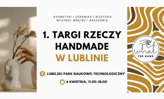 Lublin Zapraszamy na lubelską edycję Targów Handmade – święto piękna, pasji i unikalności! Odkryj rękodzieło z duszą: biżuterię, ceramikę, naturalne kosmetyki, dekoracje, wyroby kulinarne i wiele więcej. Wybierz przedmioty tworzone z sercem i podaruj sobie lub bliskim coś wyjątkowego! ...