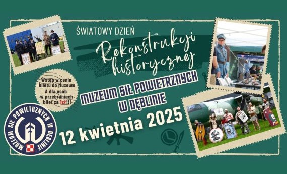 Dęblin Muzeum Sił Powietrznych w Dęblinie zaprasza na trzecią edycję obchodów Światowego Dnia Rekonstrukcji Historycznej. 🗓️ 12 kwietnia 2025 r.,🕰️ g. 12:00-17:00,📌 Muzeum Sił Powietrznych w Dęblinie, ul. Lotników Polskich 1 To wyjątkowe wydarzenie pozwoli przenieść się w czasie i doświadczyć historii na żywo. W programie przewidziano: pokazy rekonstrukcyjne, prezentacje strojów z różnych epok, prezentacje broni, pojazdów i umundurowania rozmaitych formacji wojskowych, prelekcje i ...