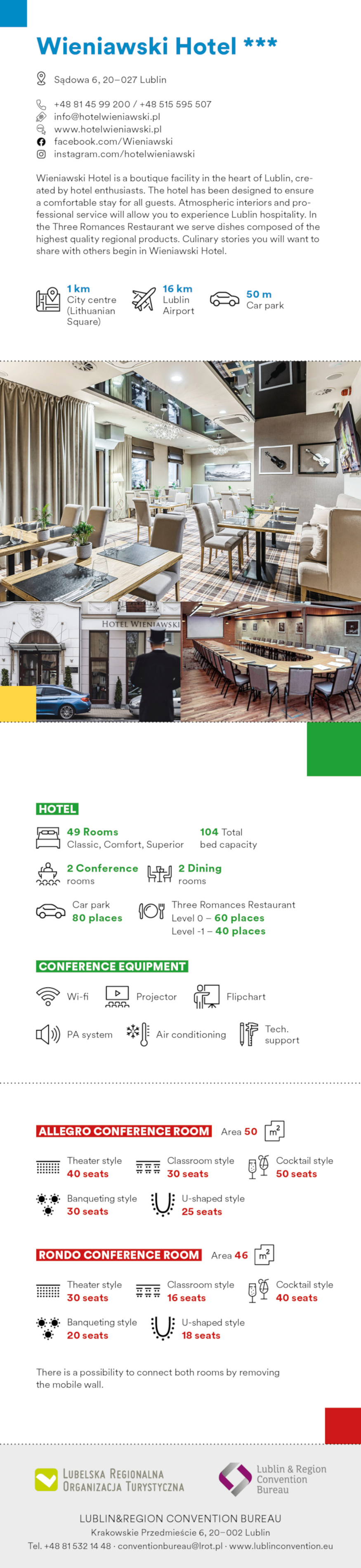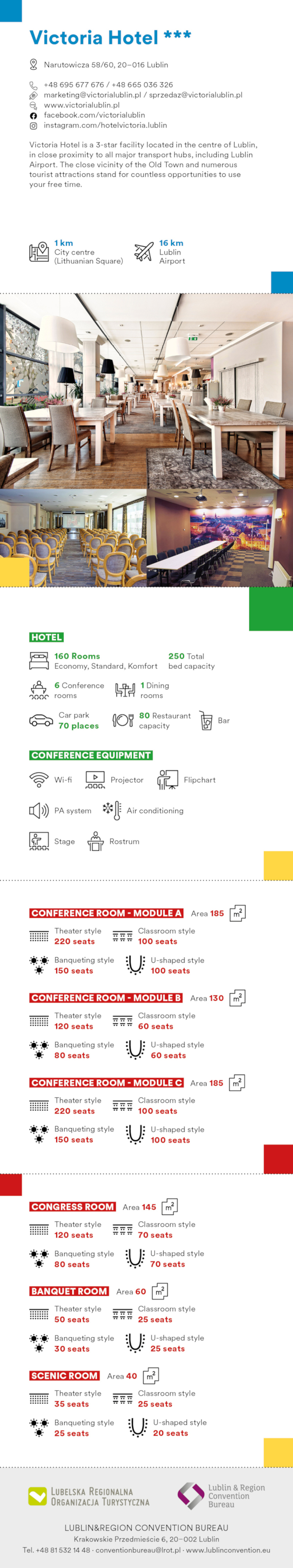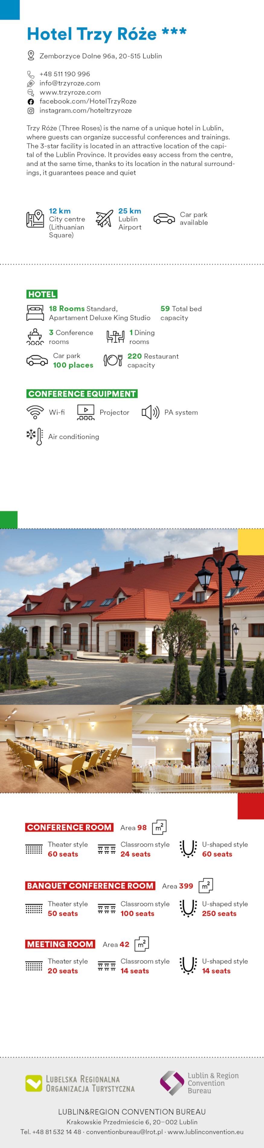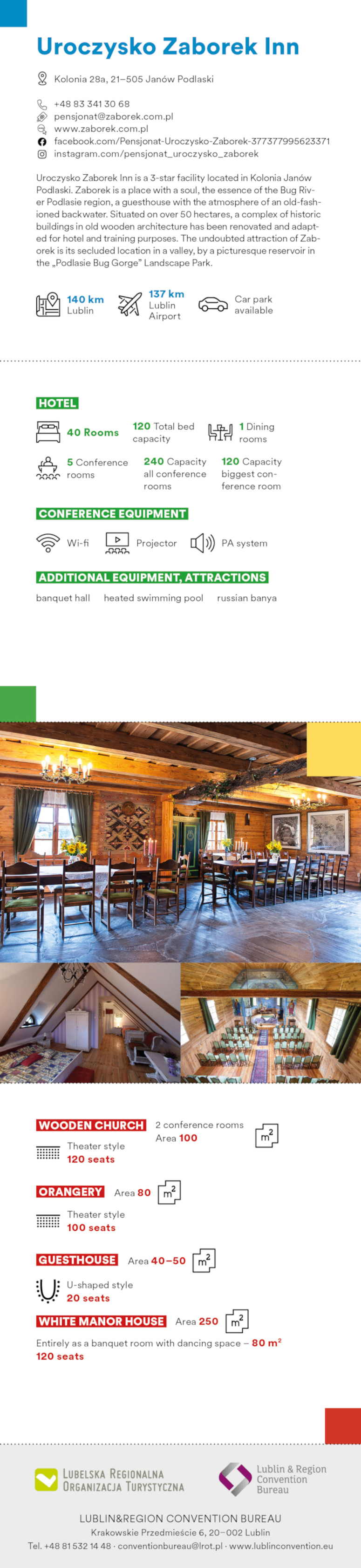 Below we present the Conference Venues Catalogue from the Lublin Voivodeship, where you can find information about conference equipment, available conference rooms of the largest conference facilities and hotels in our region. The catalog will be constantly updated and supplemented.