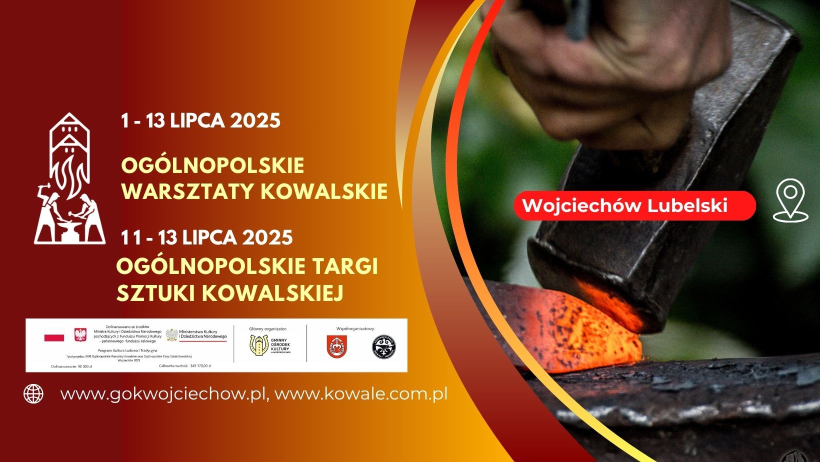 W dniach 1–13 lipca 2025 roku w Wojciechowie Lubelskim odbędą się XXXI Ogólnopolskie Warsztaty Kowalskie – prestiżowe wydarzenie skupiające kowali z całej Polski i zagranicy. To unikalna przestrzeń zarówno dla mistrzów sztuki kowalskiej, jak i młodych adeptów, którzy doskonalą swoje umiejętności pod okiem doświadczonych rzemieślników. Program obejmuje m.in. sympozjum naukowe, konkurs kowalstwa artystycznego z prezentacją prac tworzonych na miejscu, a także widowiskowe pokazy tradycyjnych technik – takich jak kucie podkowy czy podkuwanie konia. Nie zabraknie również wystaw, kiermaszu sztuki ludowej oraz koncertów, a kulminacyjnym punktem wydarzenia będzie nocne kucie w niedzielny wieczór. W dniach 11–13 lipca równolegle odbędą się Ogólnopolskie Targi Sztuki Kowalskiej, stanowiące okazję do spotkań, prezentacji i sprzedaży wyrobów kowalskich.