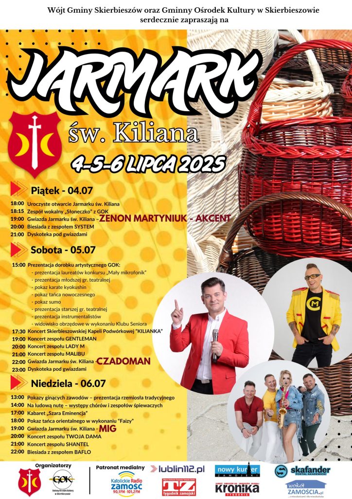 Coroczny jarmark św. Kiliana w Skierbieszowie to trzy dni dobrej zabawy. Oprócz jarmarku rękodzieła i produktów tradycyjnych w programie także występy artystyczne, koncerty, atrakcje dla dzieci oraz dyskoteka pod gwiazdami. W niedzielę odbędzie się także pokaz ginących zawodów.