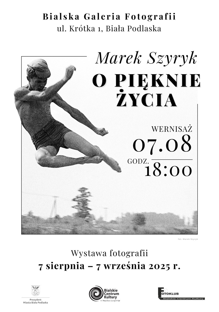 Bialska Galeria Fotografii prezentuje wystawę "Marek Szyryk – O pięknie życia", ukazującą dzieciństwo uchwycone w latach 70. prostymi aparatami. Fotografie pełne nostalgii i refleksji tworzą opowieść o beztrosce, przyjaźni i przemijaniu.