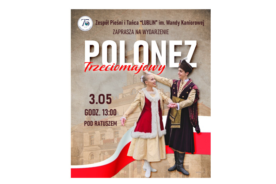 Lublin W dniu Narodowego Święta Trzeciego Maja, Zespół Pieśni i Tańca „Lublin” oczaruje zgromadzonych w centrum Lublina tradycyjnym polonezem oraz tańcami narodowymi i regionalnymi. Jak co roku, do tańca zostaną zaproszeni mieszkańcy i goście Koziego Grodu. ...