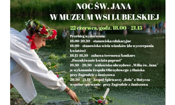 Lublin Noc, w czasie której światło wygrywa z ciemnością, magia miesza się z wiarą a kwiat paproci obdarza dobrobytem tych szczęśliwców, którzy go odnajdą. Wszyscy ciekawi dawnych wierzeń i zwyczajów Nocy Świętojańskiej powinni przybyć 22 czerwca do lubelskiego skansenu i dać się zauroczyć czarowi ognia, wody i lata. ...