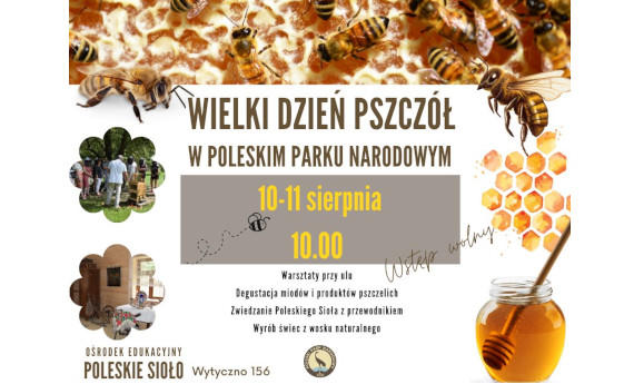 Wytyczno Człowiek zawdzięcza wiele pszczołom. Dlaczego? Dowiecie się w trakcie Wielkiego Dnia Pszczół organizowanego w Poleskim Parku Narodowym. Oprócz ciekawych informacji czeka na Was degustacja wyrobów pszczelarskich, różnorodne warsztaty oraz zwiedzanie ośrodka edukacyjnego "Poleskie Sioło" z przewodnikiem. ...