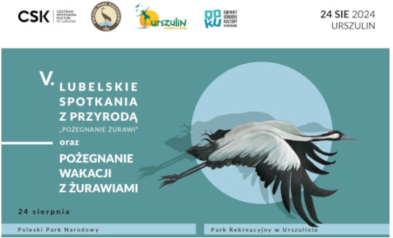 Poleski Park Narodowy Żurawie, jeden z symboli zachwycającego Polesia. Ich odloty to niezaprzeczalny znak końca lata. Wraz z pracownikami Poleskiego Parku Narodowego pożegnaj te piękne ptaki. W ramach wydarzenia między innymi liczenie żurawi, zwiedzanie ścieżek dydaktycznych, prelekcje i występy artystyczne. ...