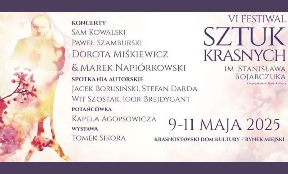 Krasnystaw W dniach 9–11 maja 2025 roku w Krasnostawskim Domu Kultury odbędzie się VI edycja Festiwalu Sztuk Krasnych im. Stanisława Bojarczuka. Przestrzeń festiwalowa wypełniona zostanie spotkaniami autorskimi, wystawami, koncertami i projekcjami filmowymi. Wydarzenia inspirowane twórczością patrona festiwalu podkreślą rolę sztuki ludowej i literatury w budowaniu lokalnej tożsamości. ...
