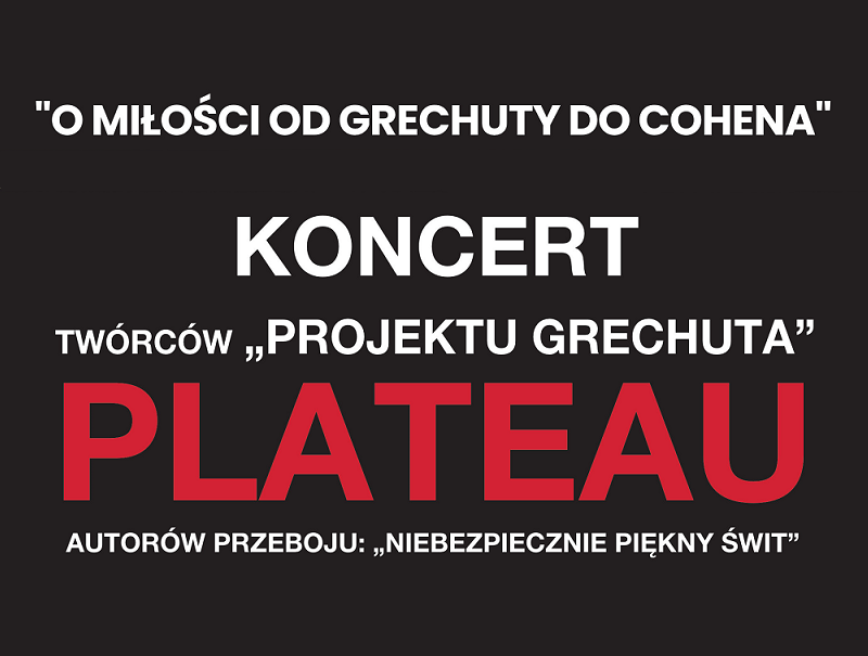 Zespół Plateau istnieje już od ponad 20 lat. W swojej twórczości umiejętnie łączą muzykę alternatywną z poetyckimi tekstami. Rozgłos przyniósł im album z interpretacjami utworów Marka Grechuty - "Projekt Grechuta". W 2020 roku artyści powtórzyli zabieg wykorzystując tym rzem twórczość Leonarda Cohena. Krążek zatytuowano "Projekt Cohen". Podczas koncertu będzie można usłyszeć najbardziej znane utwory Grechuty oraz Cohena, a także autorskie piosenki zespołu Plateau. Więcej informacji... ...