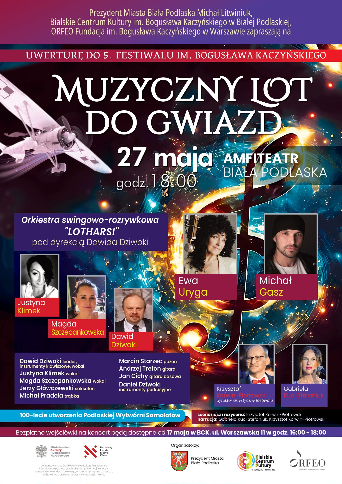 Udaj się w muzyczną podróż do gwiazd w Białej Podlaskiej. Koncert organizowany w ramach dziesięciolecia powstania Podlaskiej Wytwórni Samolotów. Wydarzenie jest zapowiedzią V edycji Festiwalu im. Bogusława Kaczyńskiego, który odbędzie się w sierpniu w Białej Podlaskiej.