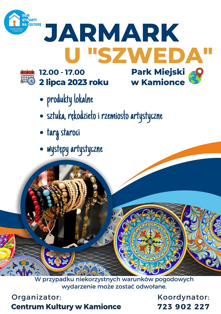 Pierwsza niedziela lipca zapowiada się bardzo zachęcająco! Centrum Kultury w Kamionce zaprasza do Parku Miejskiego na Jarmark u "Szweda". W programie występy artystyczne, targ staroci, a także mnóstwo produktów regionalnych i lokalnego rękodzieła.