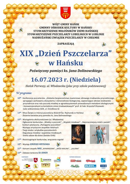Przed nami XIX Festyn „Dzień Pszczelarza im. ks. Jana Dolinowskiego”. W ramach wydarzenia poznamy bliżej postać J. Dolinowskiego – księdza unickiego a także zasłużonego pszczelarza. W programie m.in. konferencja, targi, degustacje czy koncerty zespołów ludowych.