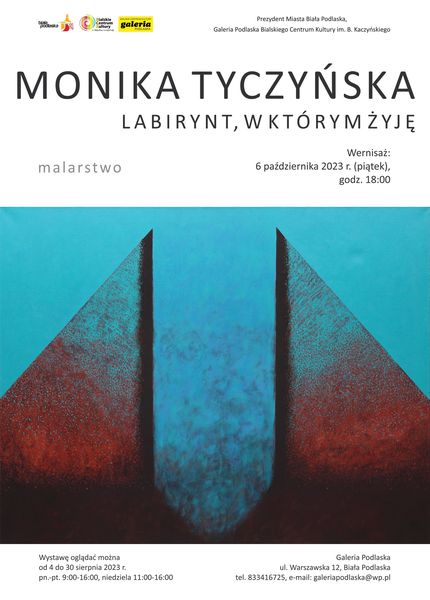 Wernisaż wystawy "Labirynt, w którym żyję" M. Tyczyńska | Biała Podlaska 06.10.2023 30.10.2023 Poznaj labirynt, w którym żyje malarka Monika Tyczyńska. Więcej informacji na facebook.com