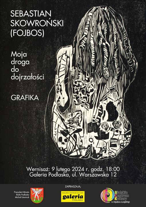 Wernisaż drzeworytów Sebastiana Skowrońskiego "Moja droga do dojrzałości" | Biała Podlaska 09.02.2024 09.02.2024 Poznaj najstarszą technikę graficzną z pomocą wyjątkowych prac Sebastiana Skowrońskiego. Więcej informacji na facebook.com