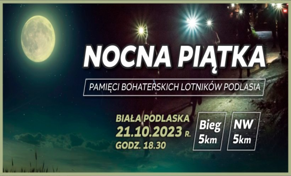 Nocny bieg przy blasku księżyca ulicami Białej Podlaskiej i pięknie oświetlonym Parkiem Radziwiłłów, przyczyni się do uhonorowania Bohaterskich Lotników Podlasia. W programie dwie konkurencje – biegowa oraz nordic walking. Więcej informacji na facebook.com ...