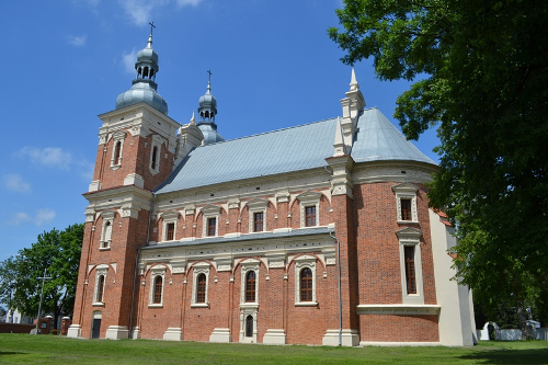 Wybudowana w latach 1628 – 1638 świątynia należy do wybitnych przykładów sztuki manierystycznej. Jest to budowla jednonawowa, z półkoliście zamkniętym prezbiterium. Dwie wieże od frontu zostały dobudowane w połowie XIX wieku. Zdobienia portalu głównego nawiązują do warsztatu pińczowskiego, ukształtowanego na motywach twórczości Santi Gucciego. W świątyni widoczne są silne wpływy niderlandzkie w kontrastowym łączeniu czerwonych, ceglanych, nieotynkowanych ścian z bielą detalu oraz stosowaniu ornamentu okuciowego. Sklepienie nawy i prezbiterium pokrywa dekoracja sztukatorska typu lubelskiego. W wyposażeniu kościoła uwagę zwraca m.in. XVII-wieczna ambona, chrzcielnica z końca XVI wieku oraz oryginalne terakotowe posągi proroków inspirowane dziełami Michała Anioła.
