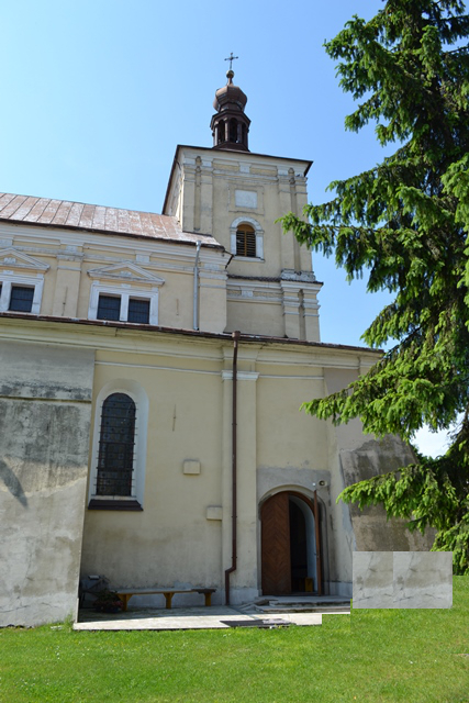 Obiekt o układzie bazylikowym posiada krótki korpus nawowy, masywną wieżę w fasadzie oraz wydłużone, trójbocznie zamknięte prezbiterium. Wnętrze świątyni jest bogato zdobione sztukateriami w typie lubelskim. Szczególną uwagę skupiają dekoracje podłucza arkad z plakietami w formie rozet, uskrzydlonych główek aniołów, gryfów i orłów, których wykonanie przypisuje się Janowi Wolffowi. W ołtarzu głównym znajduje się cudowny obraz Matki Bożej Bonifraterskiej z końca XVIII w.