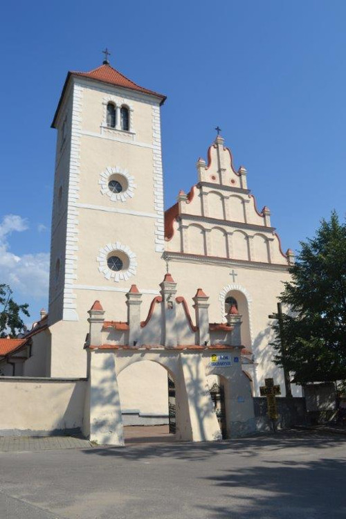 Historia istniejącego tu pierwotnego, gotyckiego kościoła sięga XIV wieku. Przebudowa na przełomie XVI i XVII w. nadała budowli cechy renesansu lubelskiego. Wykonano charakterystyczne szczyty, a kolebkowe sklepienie ozdobiono sztukateriami autorstwa Jakuba Balina – wybitnego architekta włoskiego pochodzenia, działającego na ziemiach polskich. Do boku fasady dobudowano czworoboczną wieżę.
