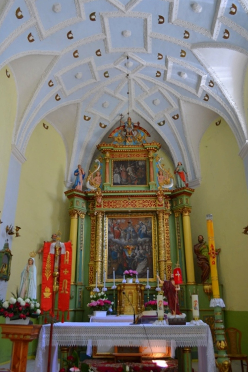 Położony w nadwiślańskiej wsi kościół został wzniesiony w 1. połowie XVII wieku w typie renesansu lubelskiego. Konsekracja miała miejsce w 1631 r.. Fundatorami murowanej świątyni byli Katarzyna Ossolińska, kasztelan lubelski Zbigniew Sieneński oraz jego żona Krystyna z Uhrowieckich.