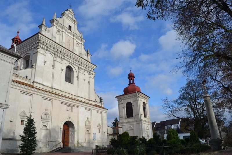 Kościół wzniesiono w 1. połowie XVII wieku przy Trakcie Lwowskim z przeznaczeniem dla zakonu augustianów. Po zniszczeniach związanych z najazdami szwedzkimi został odbudowany w 2. połowie XVII w.